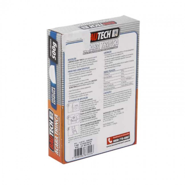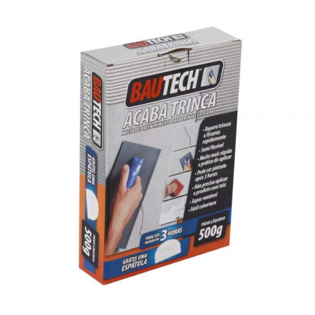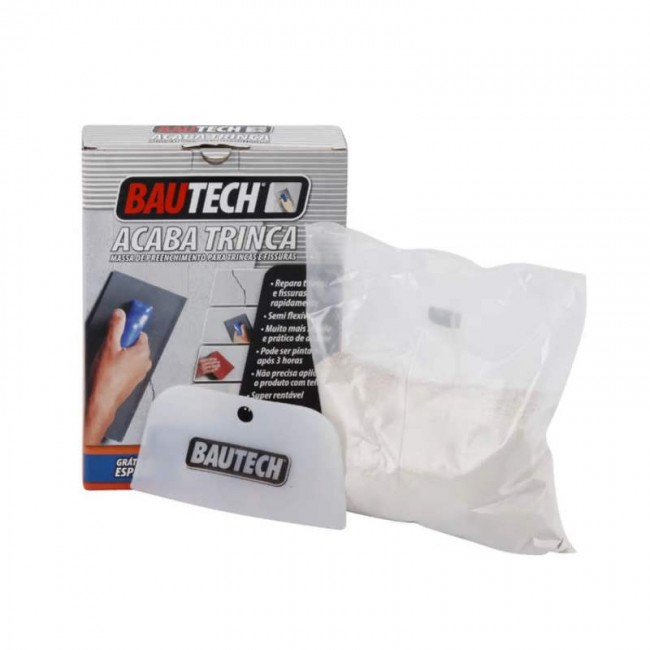 massa acaba trinca da Bautech é uma argamassa com fibras, possui secagem rápida