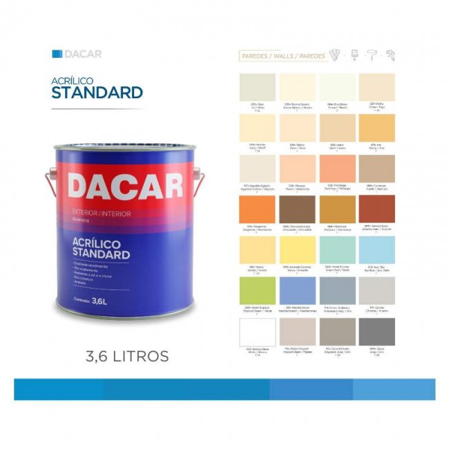 A Tinta acrílica Standard voltada para aplicação tanto em ambientes externos quanto ambientes internos, classificada pela Abrafati como TINTA STANDARD.