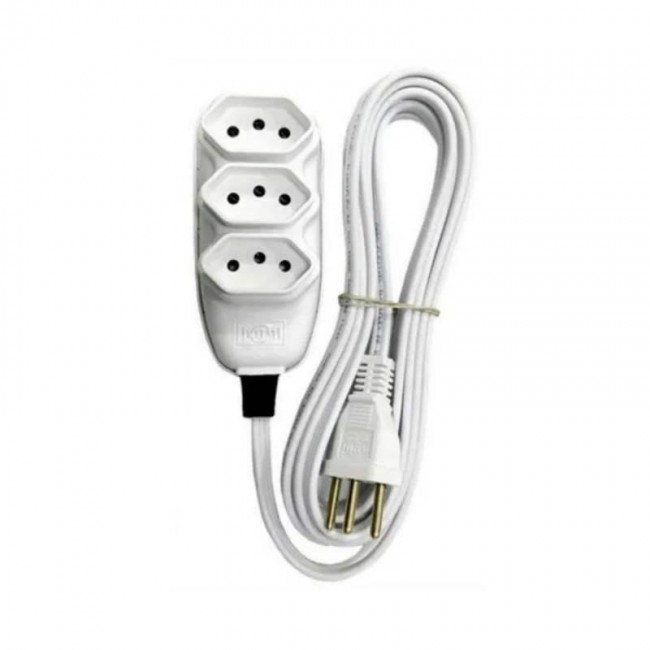 A extensão de cabo PP 10A possui três vias, ou seja, 3 tomadas para utilização. É reforçada devido ao cabo PP, que é uma "capa" a mais de proteção sobre os cabos condutores da extensão. Seu plugue é de cobre maciço, garantindo ainda mais segurança, tanto a manipulação da extensão quanto a segurança do produto, seguindo as regras e especificações tecnicas contidas nesta descrição.