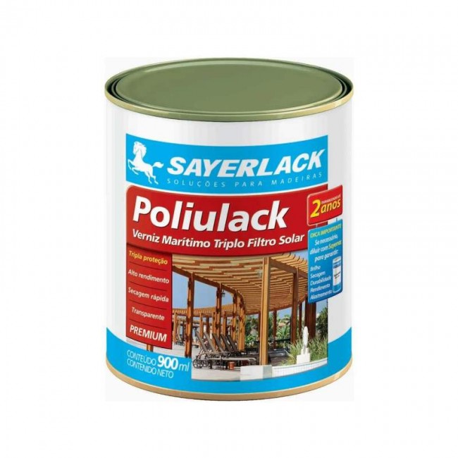 Verniz Poliulack da Sayerlack é um verniz marítimo premium indicado para madeiras. Suas características são descritas por proporcionar triplo filtro solar, alto rendimento, secagem rápida e durabilidade de até 3 anos.
